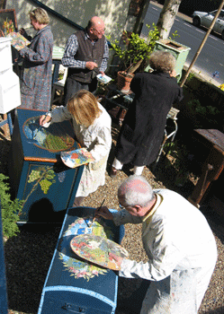 Le stage «meubles-peints» a pour principal objectif de réaliser un meuble en s'appuyant sur une technique professionnelle que j'ai mis au point. Ce stage s'effectue sur un meuble vous appartenant (exemple de meuble type : 80cm x 45 x 70) avec, en plus, la possibilité de peindre un petit objet en tôle ou un bouquet floral sur une découpe en contreplaqué.